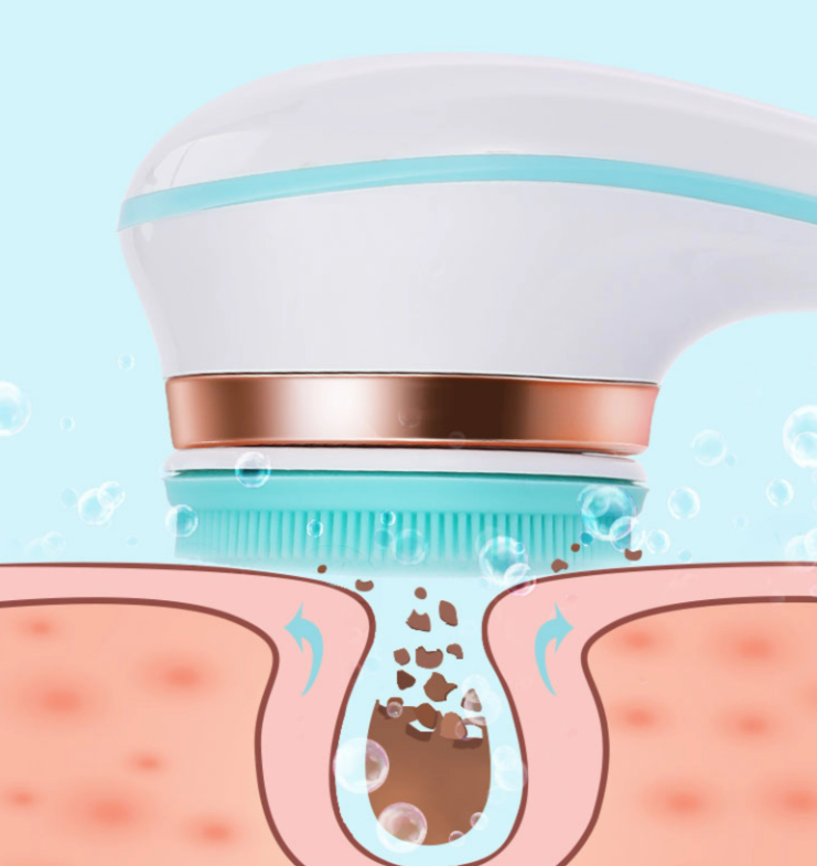 Многофункционални приставки: Включени четки за ексфолиране, масаж, почистване и премахване на мъртви клетки (обикновено 4 различни приложения)