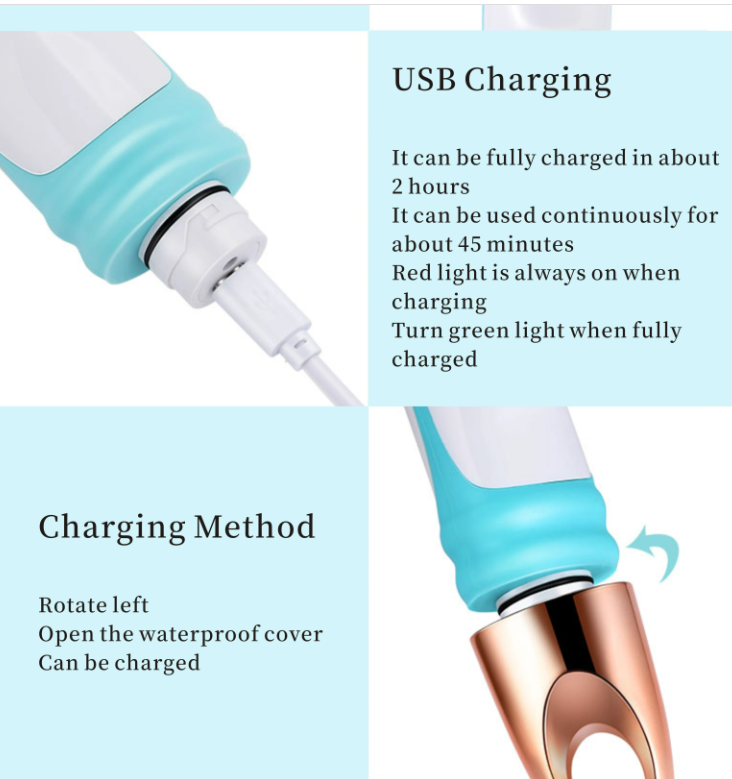 Четирите различни накрайника отговарят на разнообразните нужди за ежедневно почистване на тялото.Двоен режим с различна честота на въртене: ниска/висока скорост.