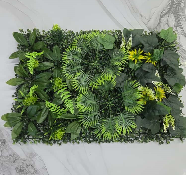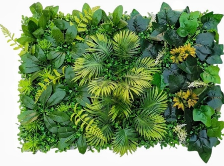 Декоративното зелено пано 40×60 см е стилно решение за създаване на модерна и свежа визия в дома, офиса или търговски пространства. Комбинацията от различни видове листа придава реалистичен, „жив“ ефект, без да е необходима поддръжка. Подходящо е за единично поставяне или за сглобяване на по-големи зелени стени.