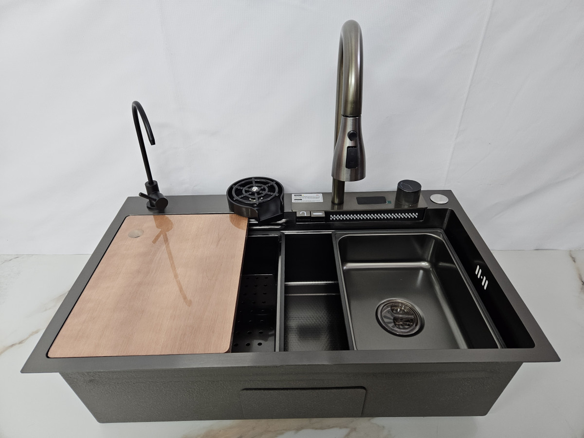 Кухненска мивка с водопад от неръждаема стомана и цифров дисплей