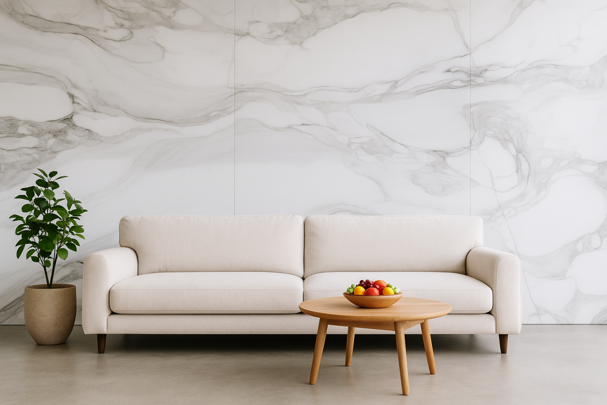 Красиви PVC стенни панели с матов мраморен ефект и голям формат 1200×2800×3 мм. Лесен монтаж без фуги, устойчива повърхност и UV защита. Комплект от 3 броя покрива над 10 м² – стилно и практично решение за баня, кухня или дневна.