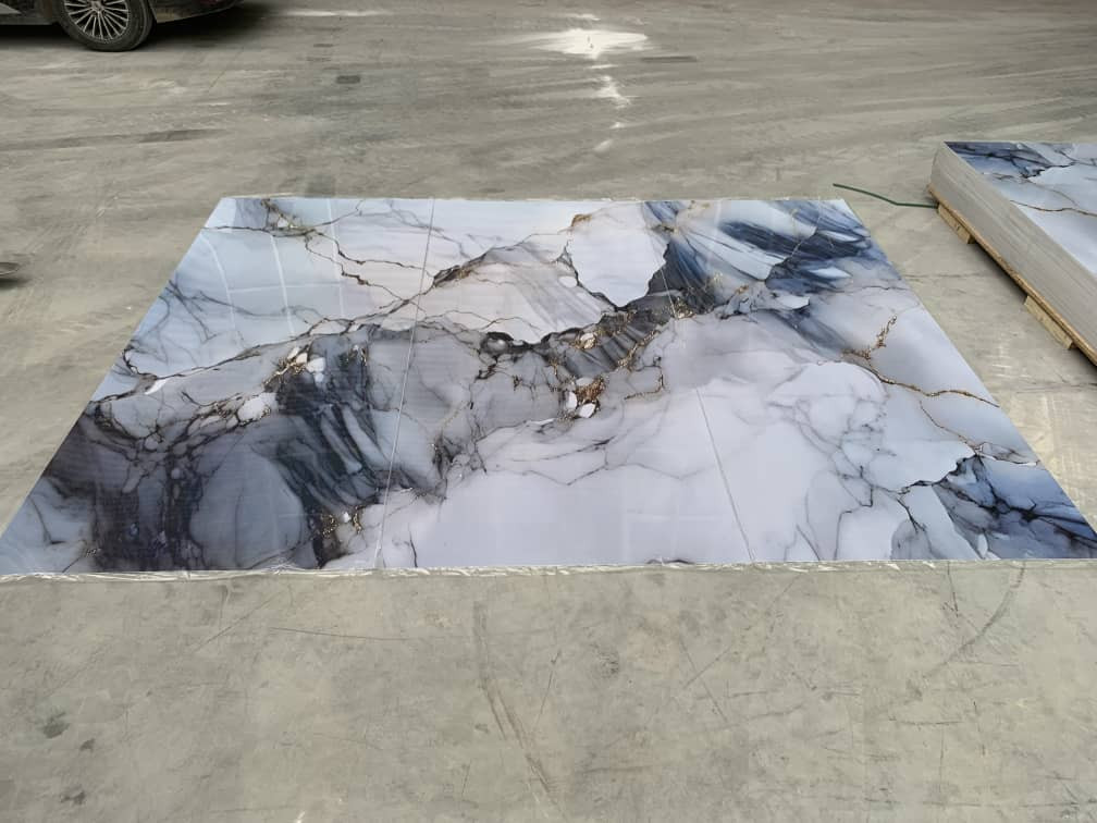 Моделът INTER 44 е сред най-търсените PVC стенни панели с мраморен ефект. Цветовете в бяло, синьо и злато го правят подходящ както за облицовка на баня и кухня, така и за модерни интериорни решения в дневни или търговски пространства.