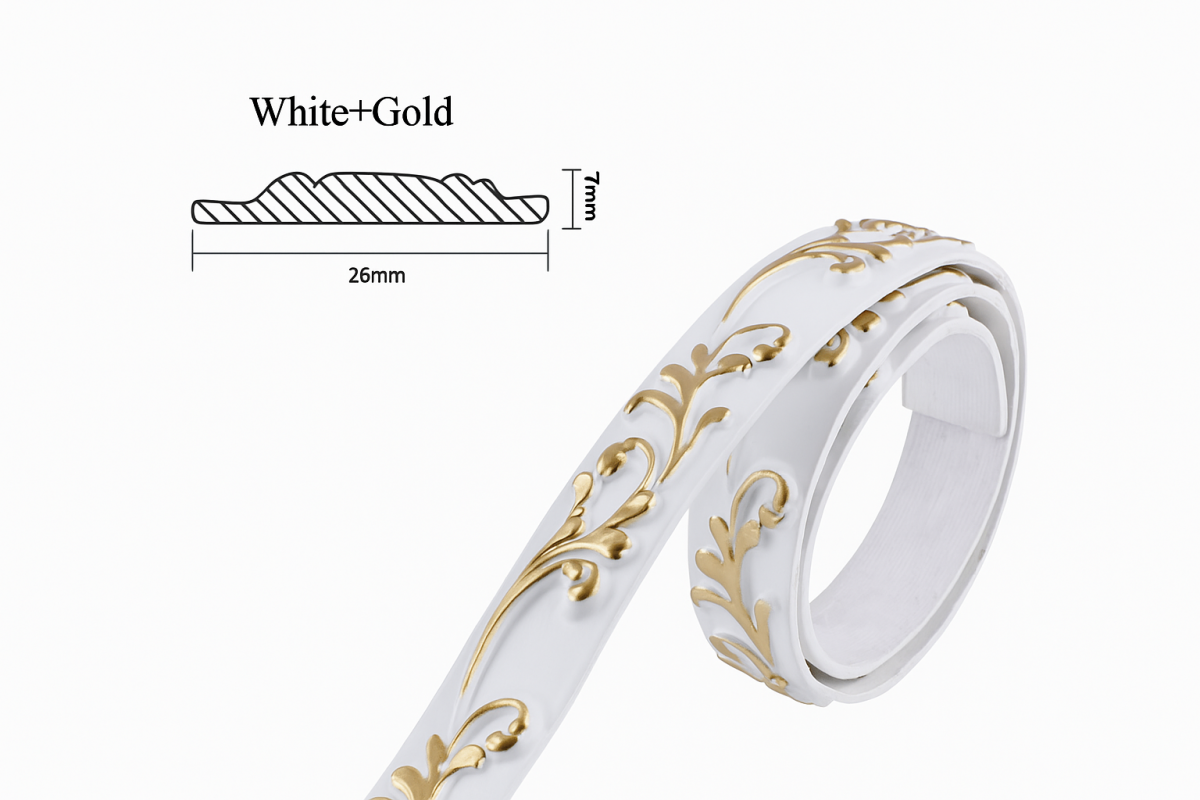 Тази декоративна лента е чудесен завършек за вашия проект. Може да се използва като преход между различни панели, рамки, или за добавяне на златист акцент към тавана.