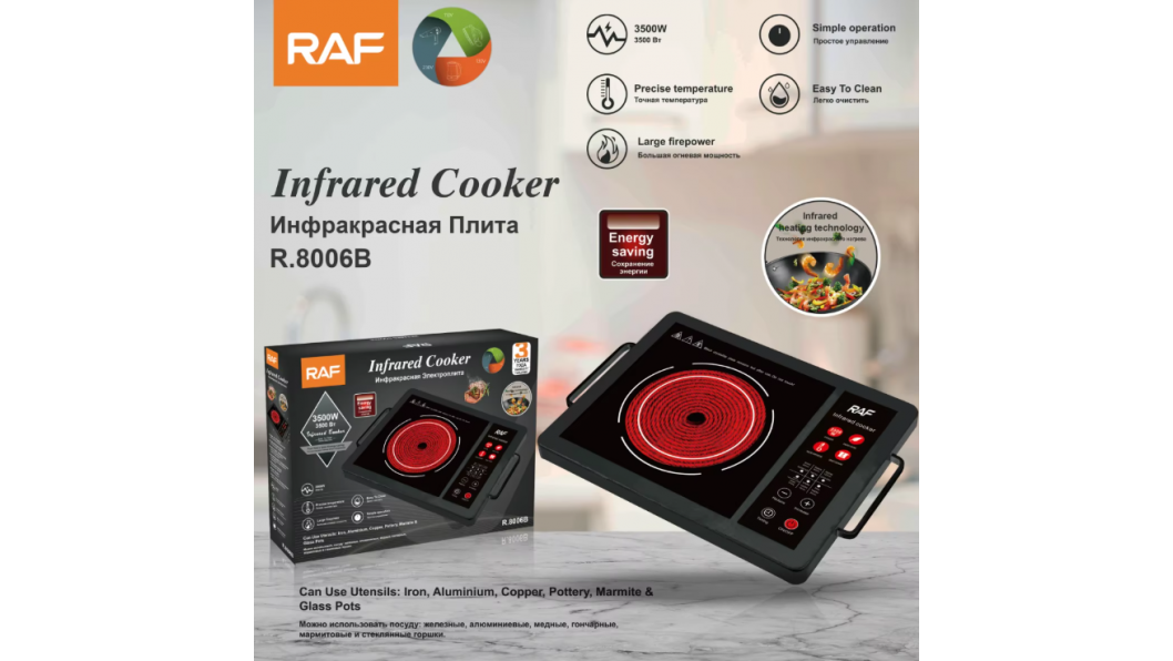 Познаваш ли онова усещане сутрин, когато бързаш за работа, а топлото кафе вече те чака? С RAF R.8046 това е напълно възможно. Компактният инфрачервен котлон загрява мигновено и е винаги под ръка – у дома, на вилата или дори в караваната. С мощност 3500W топлината се разпределя равномерно, без студени петна, а храната е готова бързо и лесно.