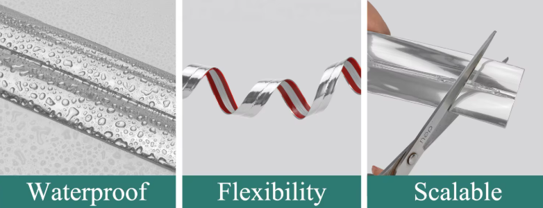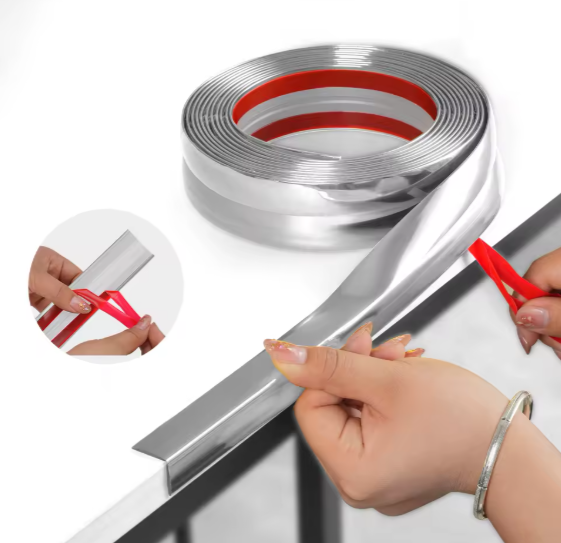 Гъвкава самозалепваща лайсна с огледален ефект – перфектно решение за завършване на ръбове, ъгли и фуги при PVC панели, огледала и мебели. Без лепило и инструменти!