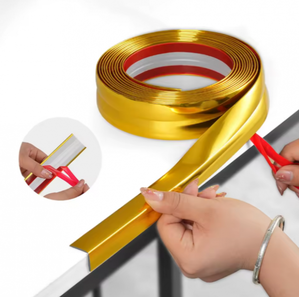 Декоративната самозалепваща лайсна е изработена от висококачествен PVC/PET материал с метализиран гланц и силно лепило.