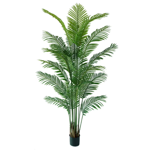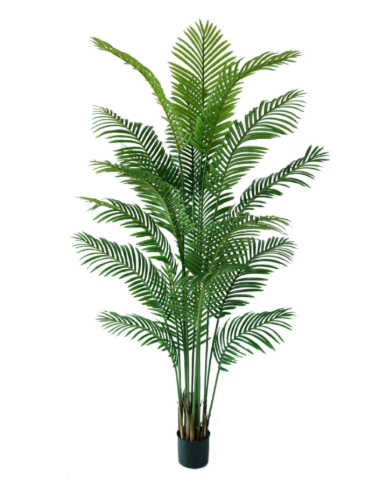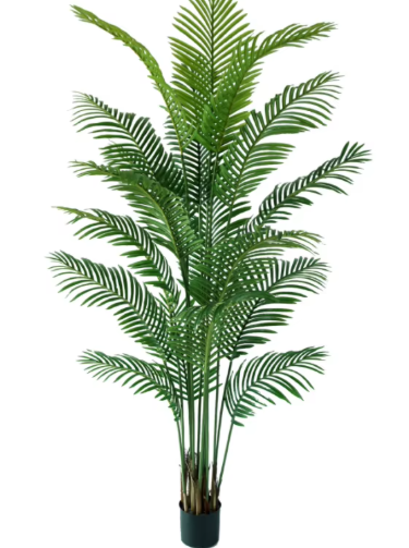 Декоративната палма с височина 220 см е подходящо допълнение към модерни интериори, офис пространства и търговски обекти. Листата са детайлно оформени, а конструкцията позволява леко разперване за по-обемен и естествен вид. Не изисква поддръжка и запазва свежия си цвят през цялата година.
