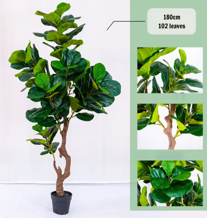 Луксозно изкуствено дърво Fiddle Leaf Fig с височина 180 см – идеален акцент за дом, офис, хотел или заведение. Реалистична текстура, естествени листа и стабилна структура, която придава зеленина и елегантност без никаква поддръжка.