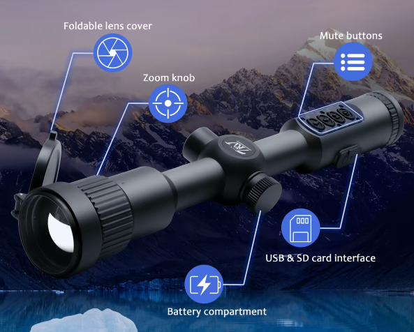 Професионална термална камера TGS450 с резолюция 384×288 px, 50 mm обектив, Wi-Fi връзка и видео запис. Подходяща за лов, охрана и наблюдение при пълна тъмнина, мъгла и дъжд.