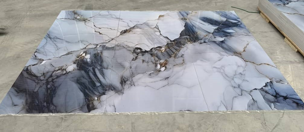 Моделът INTER 44 е сред най-търсените PVC стенни панели с мраморен ефект. Цветовете в бяло, синьо и злато го правят подходящ както за облицовка на баня и кухня, така и за модерни интериорни решения в дневни или търговски пространства.