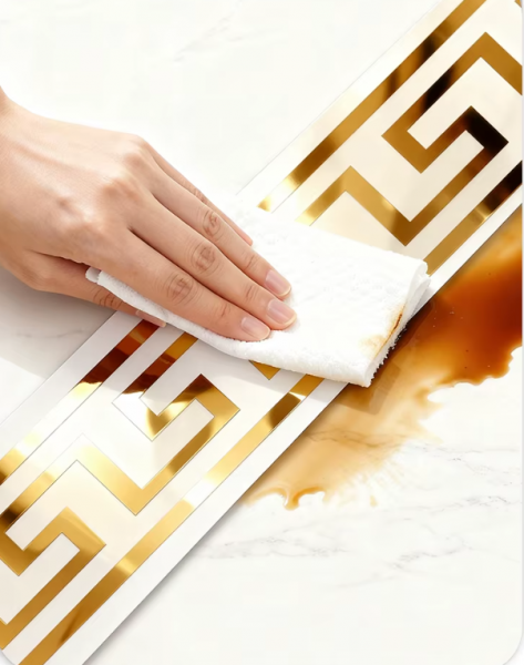 Добави изискан и модерен акцент към интериора с самозалепващия декоративен перваз Inter 214. Перфектен за стени, подове и ъгли, той съчетава златни орнаменти с елегантен дизайн, които придават усещане за лукс и чистота.