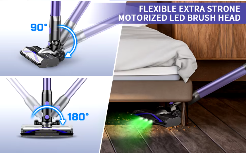 • Турбо четка + LED осветление – за по-добра видимост и почистване в ъглите